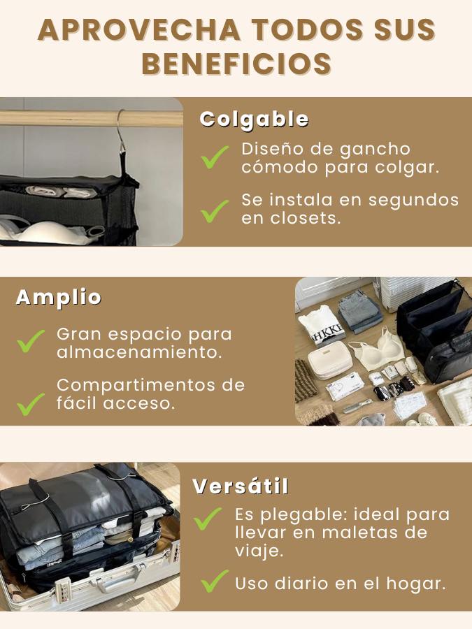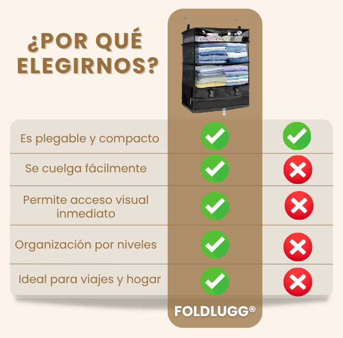 Sí, su diseño colgante y vertical es ideal para espacios reducidos. Puedes colgarlo de un gancho, barra de clóset o perchero.