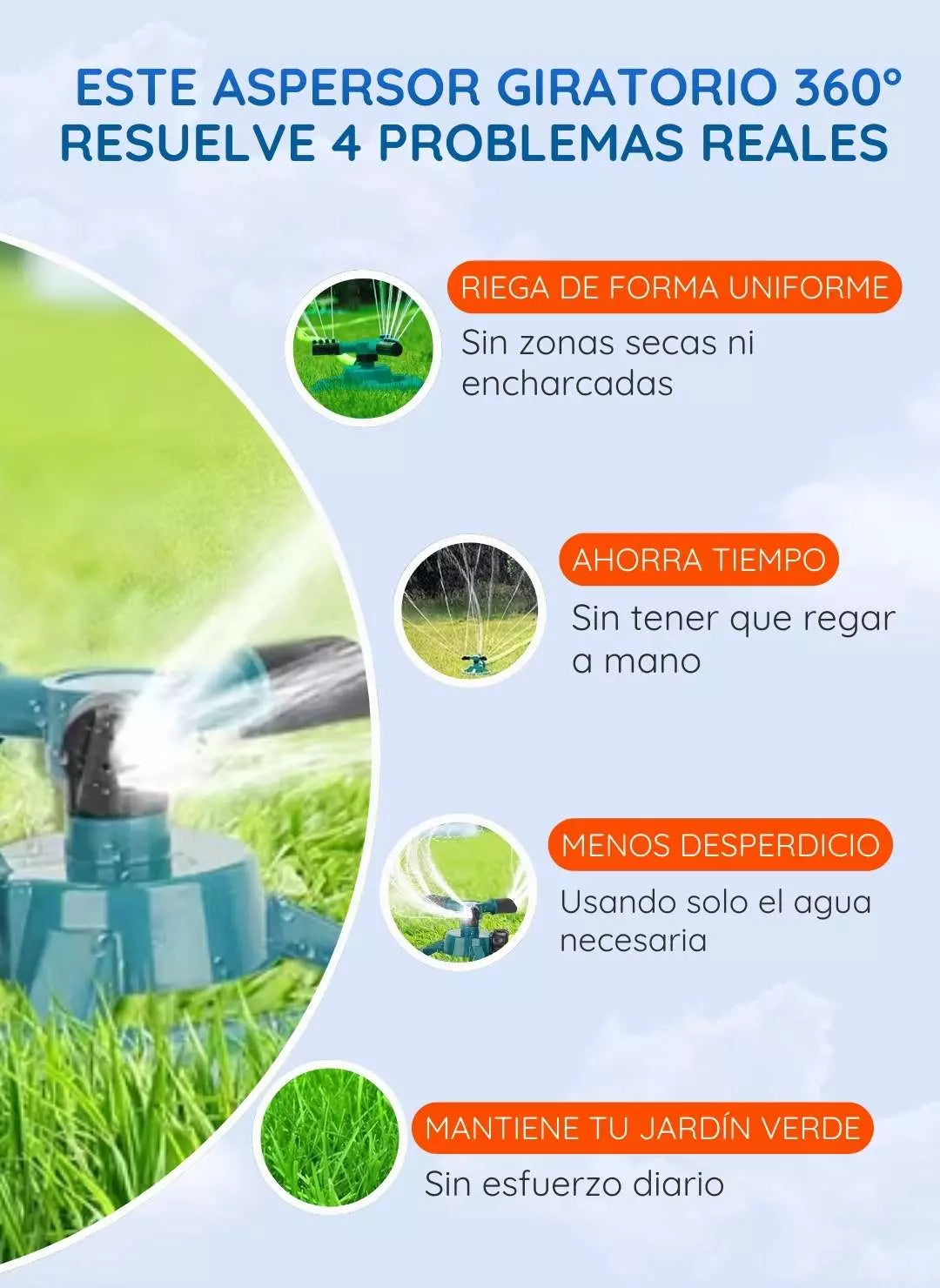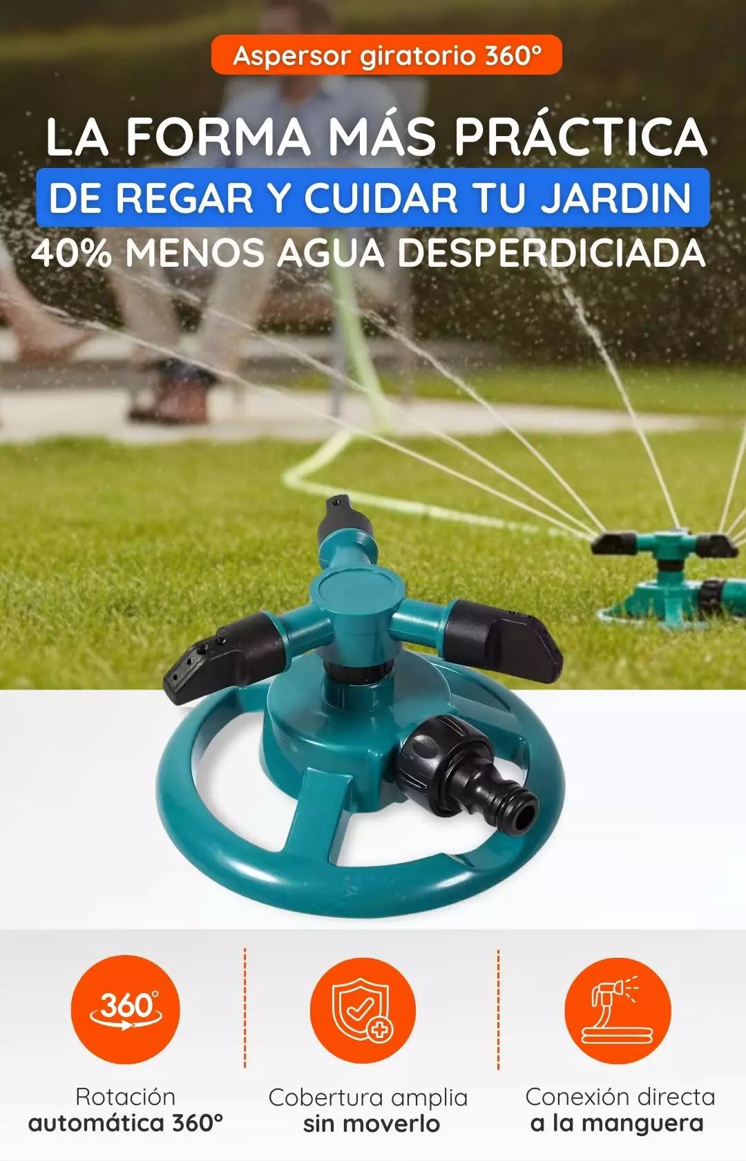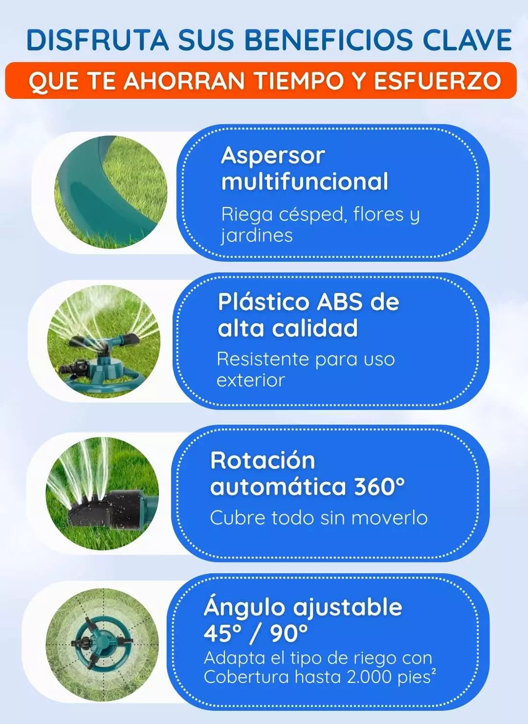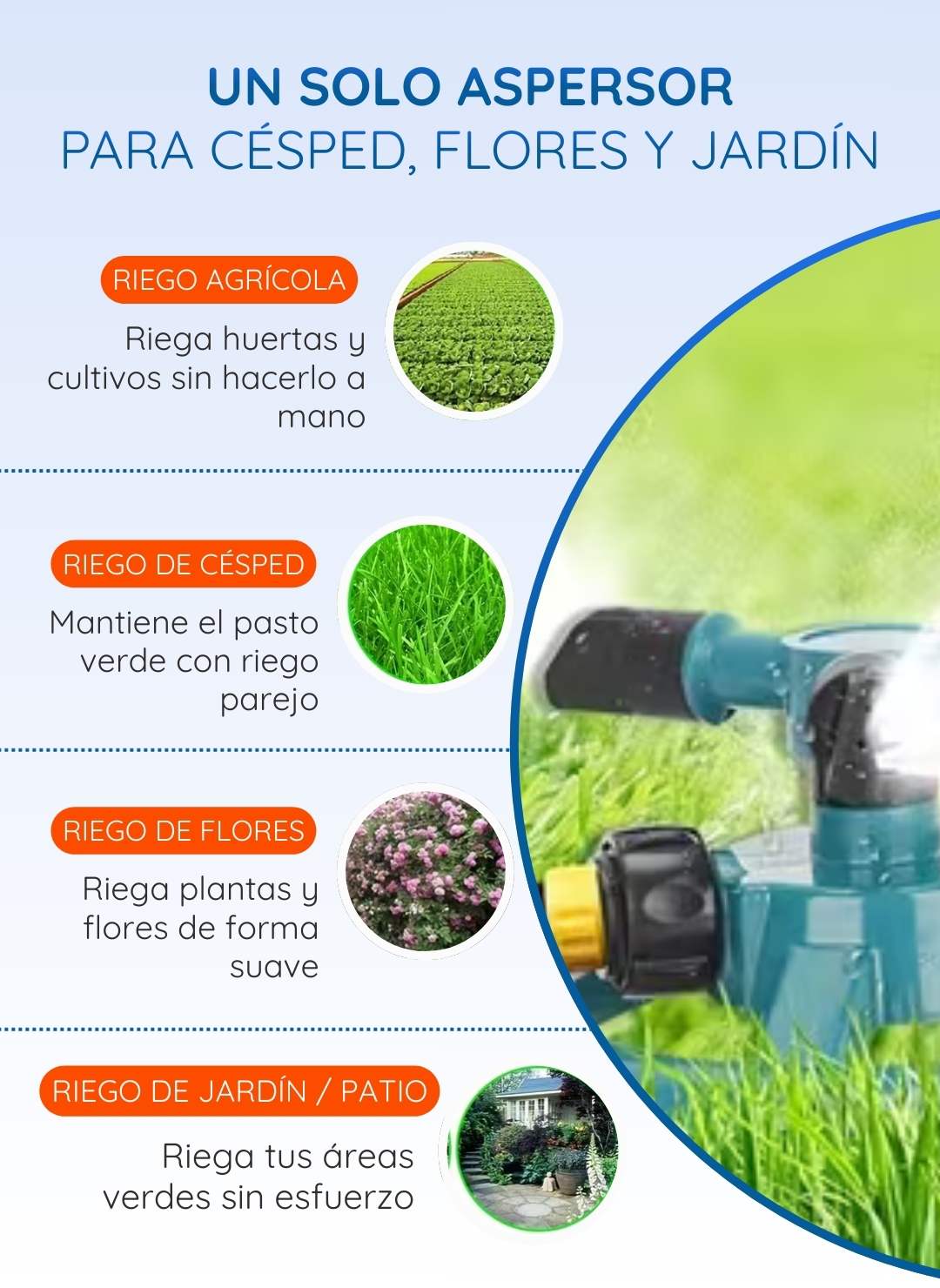 Sí, el ángulo de rociado es ajustable (45° / 90°), lo que permite usarlo en flores, césped y jardines sin dañarlos.