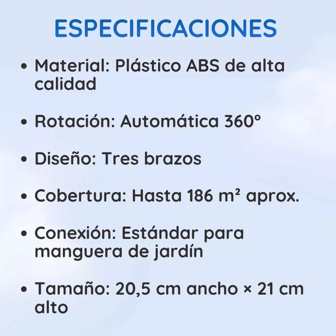 Puede cubrir hasta aproximadamente 186 m² (2.000 pies cuadrados), dependiendo de la presión del agua
